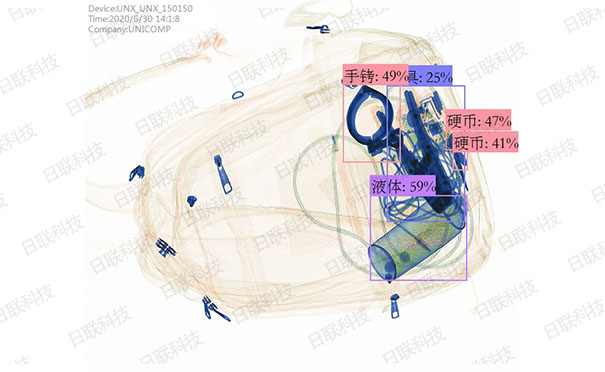 完成目标检测和目标分层技术后,可以获得各个目标的准确形状和颜色信息。并修改原子序数信息。同时,它还补充了通过双能X射线图像获得的物体体积信息。该信息可以通过深度学习神经网络自动了解要检查的材料的最大概率。